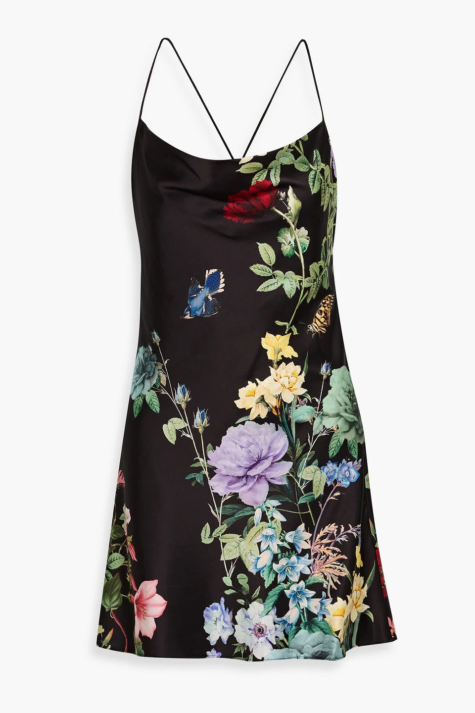 Dress printed satin draped concealed hook and zip fastening at side mid-weight, slightly stretchy fabric dry clean imported Alice + Olivia’s ‘Harmony’ floral mini is the kind of dress that makes you want to twirl, flirt and stay out way past sunset. With its silky drape and strappy open back, it’s equal parts sweet and sultry – just like you. 97% Viscose 3% Elastane Product Code 46376663163020030