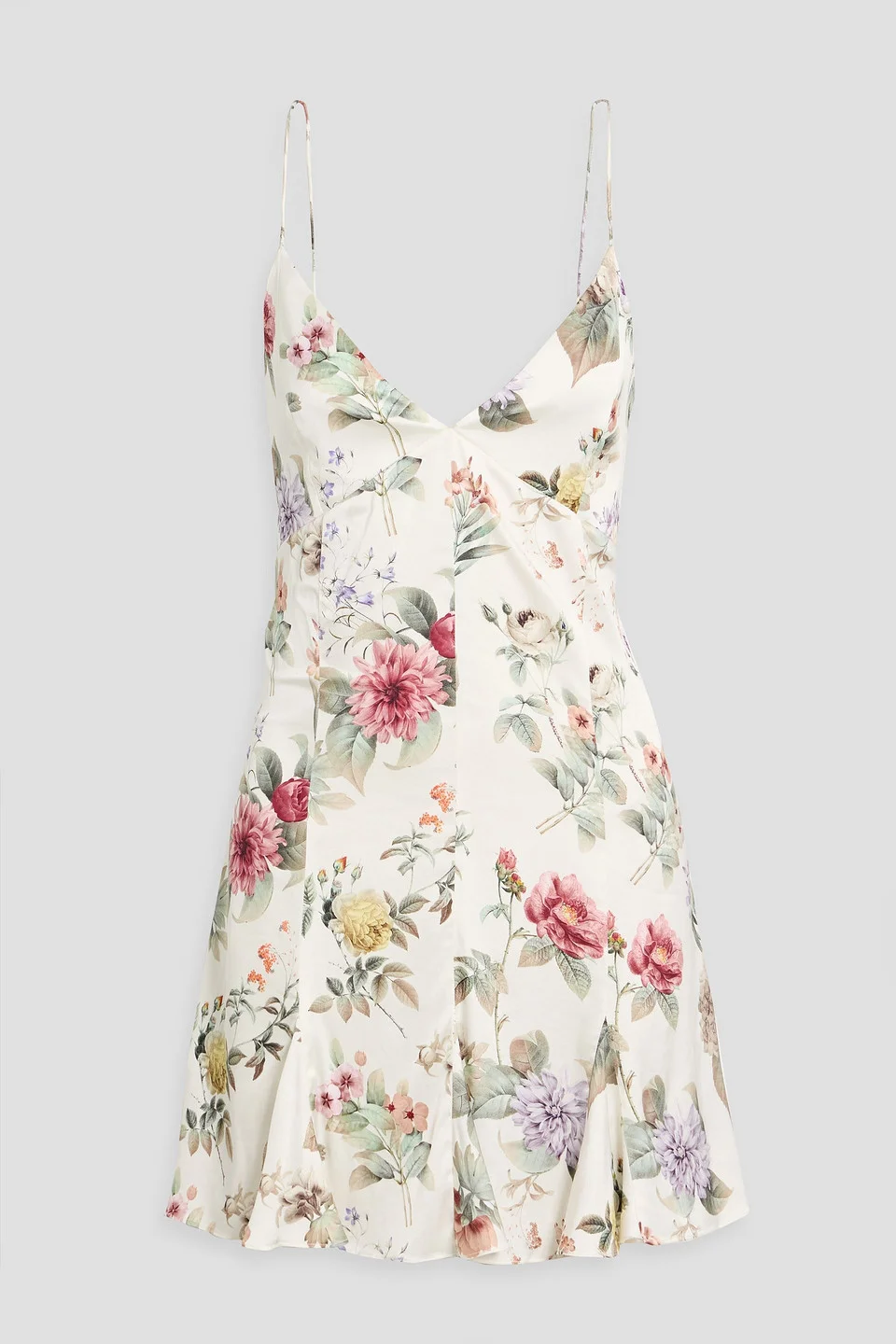 Dress floral-print satin ruffled hem concealed hook and zip fastening at back mid-weight, non-stretchy fabric dry clean imported 97% Viscose 3% Elastane Product Code 46376663162995990