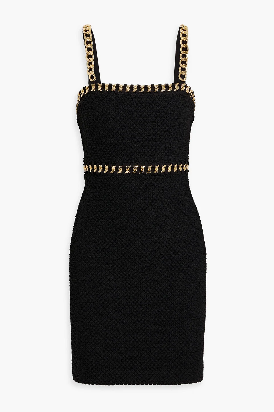 Dress cotton-blend chain-embellished zip fastening along back fully lined mid-weight knit dry clean imported There's so much to love about this 'Kelly' mini dress from Alice + Olivia. Made from soft cotton-blend with eye-catching chain embellishments, it’s perfect for making a statement. Wear it with heels and a clutch for your next night out. 51% Cotton 36% Polyester 8% Acrylic 4% Textile fibers 1% Elastane Product Code 46376663162925980