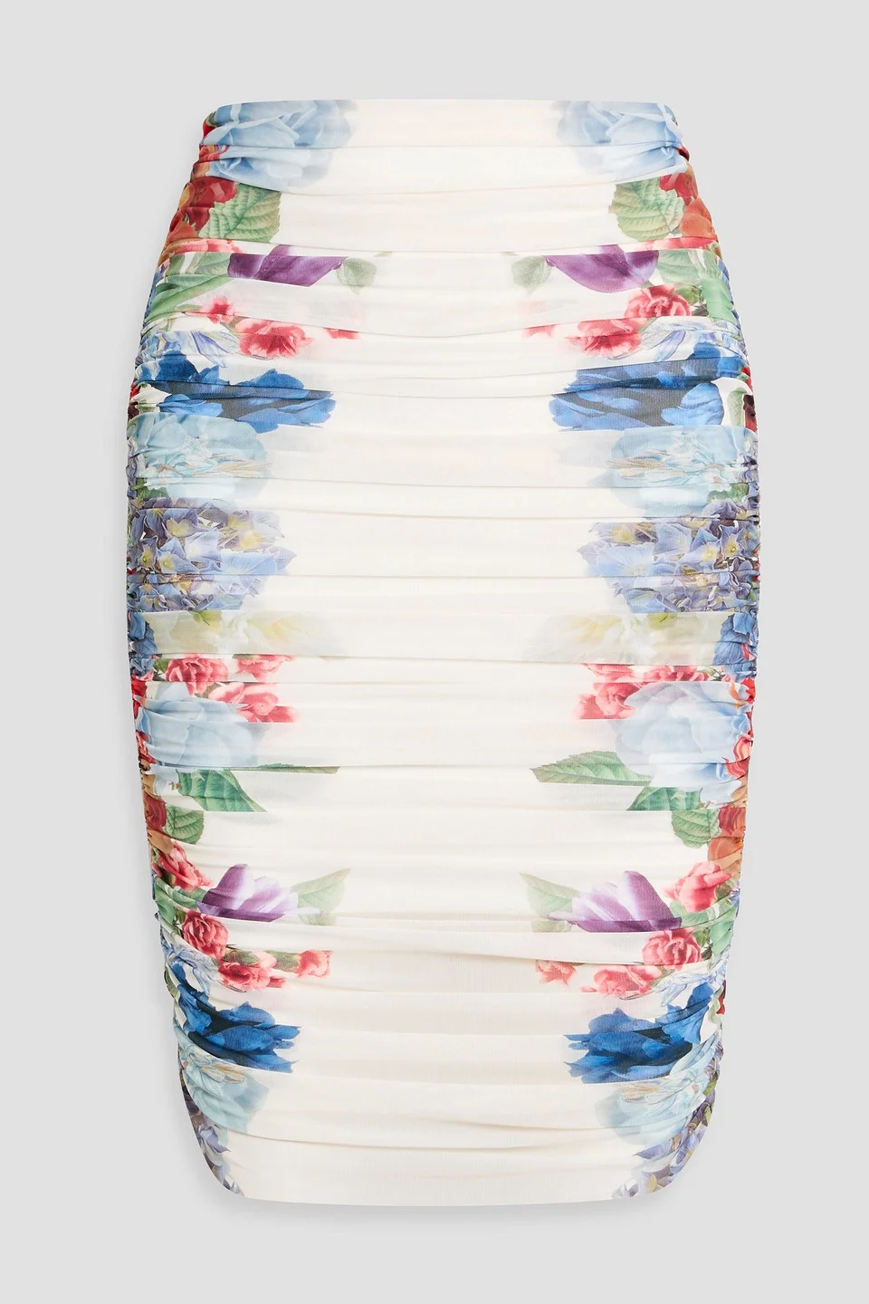 Skirt floral-print mesh ruched fully lined zip fastening along back lightweight, stretchy fabric dry clean imported 90% Polyester 10% Elastane Product Code 46376663163075563