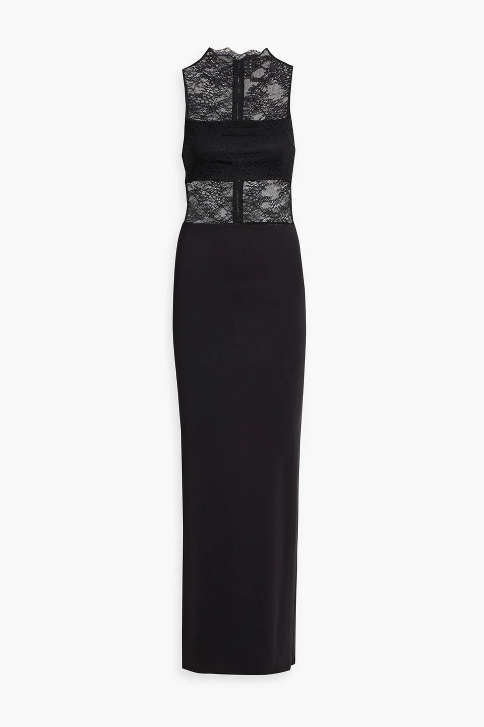 Dress lace satin paneled back slit zip fastening along back mid-weight, non-stretchy fabric dry clean imported 96% Viscose 4% Elastane Product Code 46376663163075355