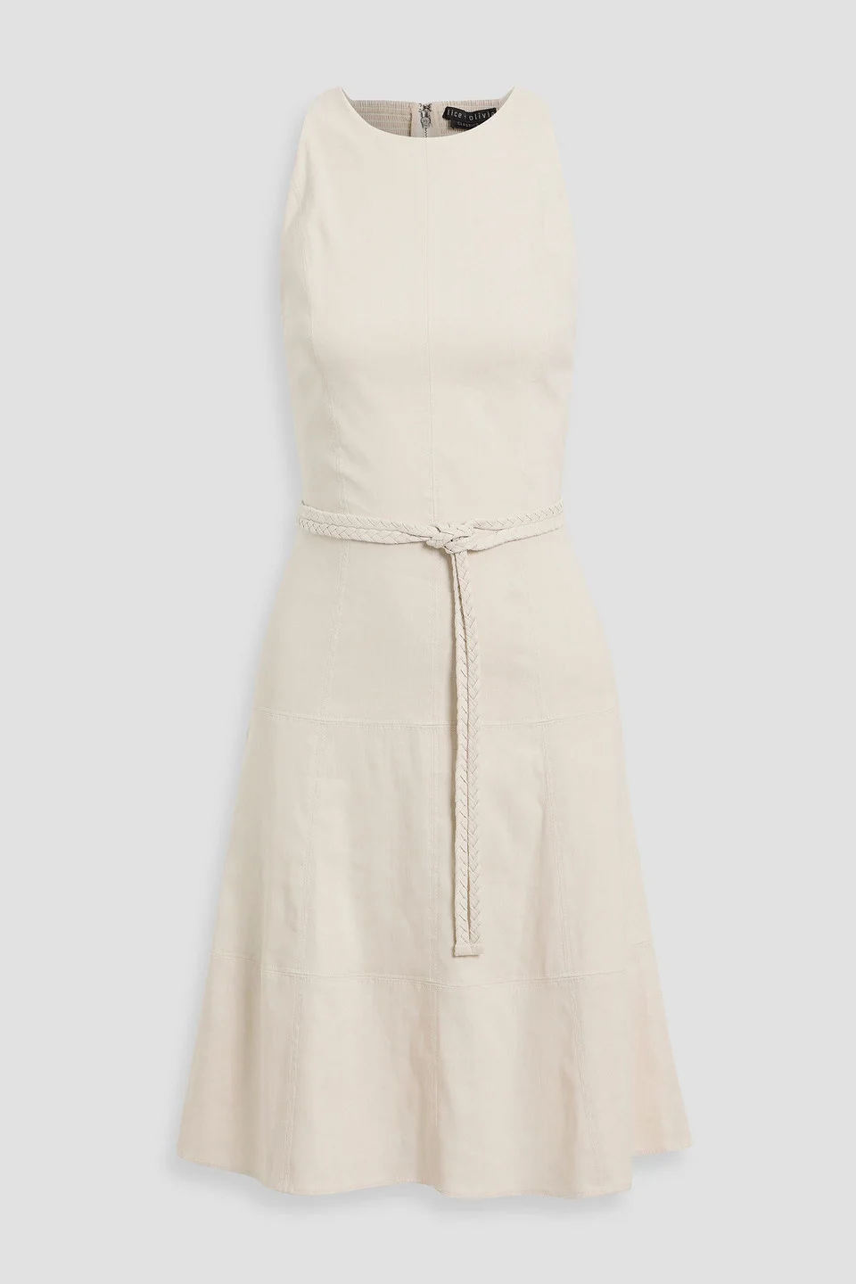 Dress linen-blend detachable waist tie concealed hook and zip fastening at back fully lined mid-weight, non-stretchy fabric dry clean imported 56% Linen 43% Viscose 1% Elastane Product Code 46376663163013565