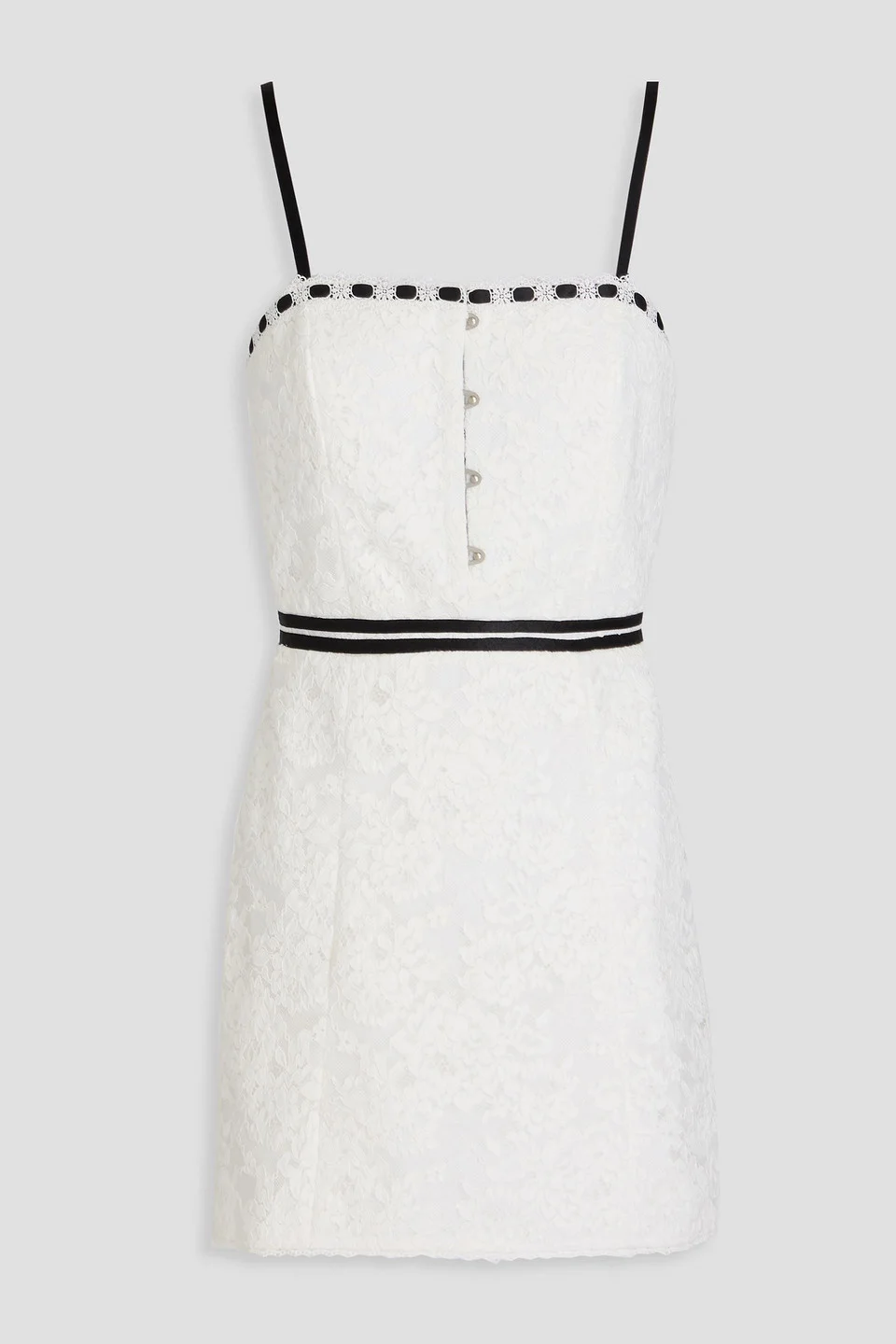 Dress corded lace satin trims shirred hook fastening at front hook and zip fastening at back fully lined mid-weight, slightly stretchy fabric dry clean imported Get ready to turn heads in Alice + Olivia’s 'Matilda' mini dress. Made from corded lace with satin trims, it’s a perfect blend of elegance and fun. Wear it with strappy sandals for a chic brunch or a night out. 58% Nylon 36% Cotton 6% Elastane Product Code 1647597358874010