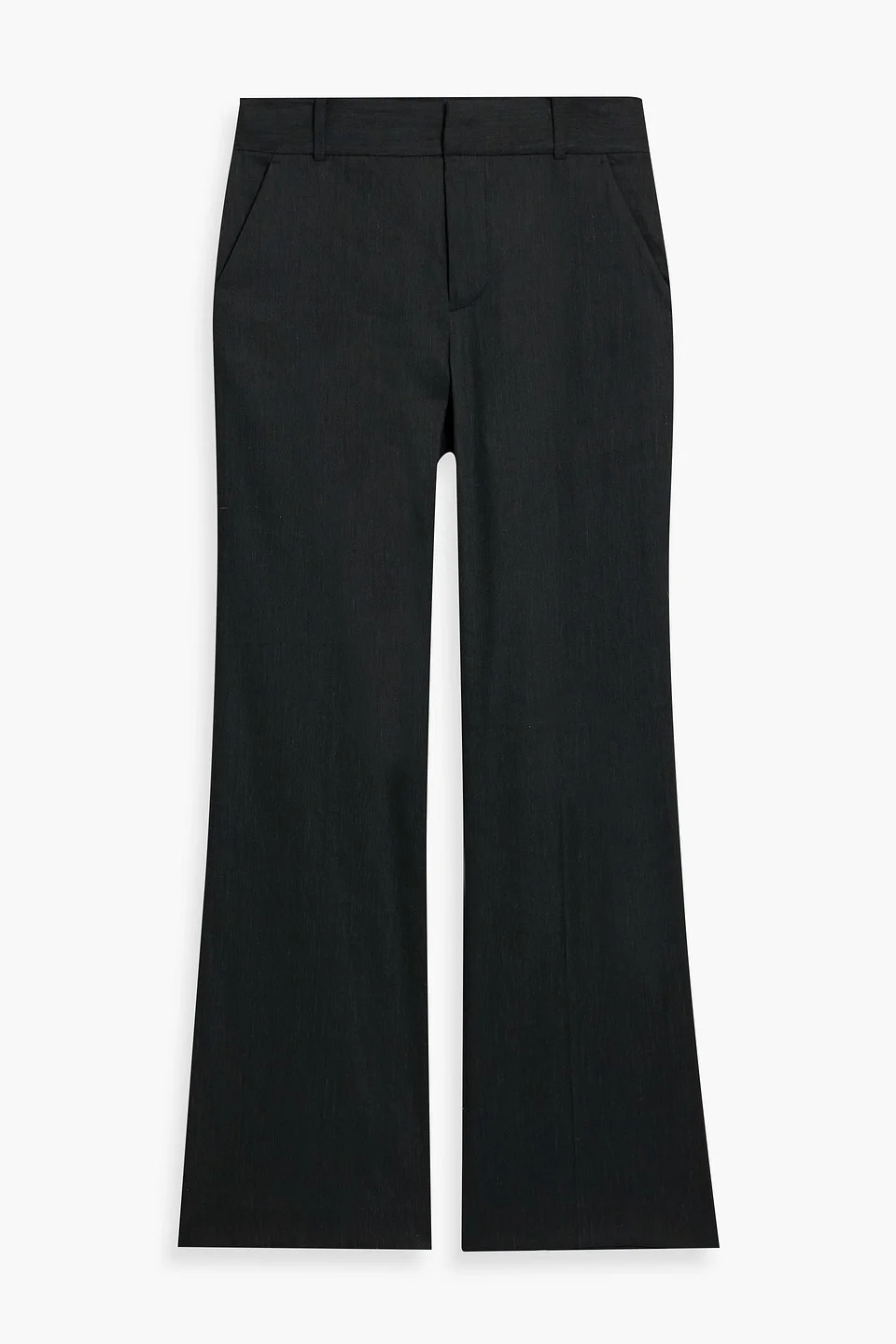 Flared pants linen-blend front slant pockets back welt pockets belt loops high-rise cut concealed hook and zip fastening at front dry clean imported 56% Linen 43% Viscose 1% Elastane Product Code 46376663163013540