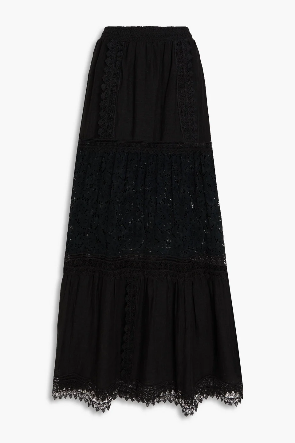 Reise guipure lace-paneled linen-gauze maxi skirt