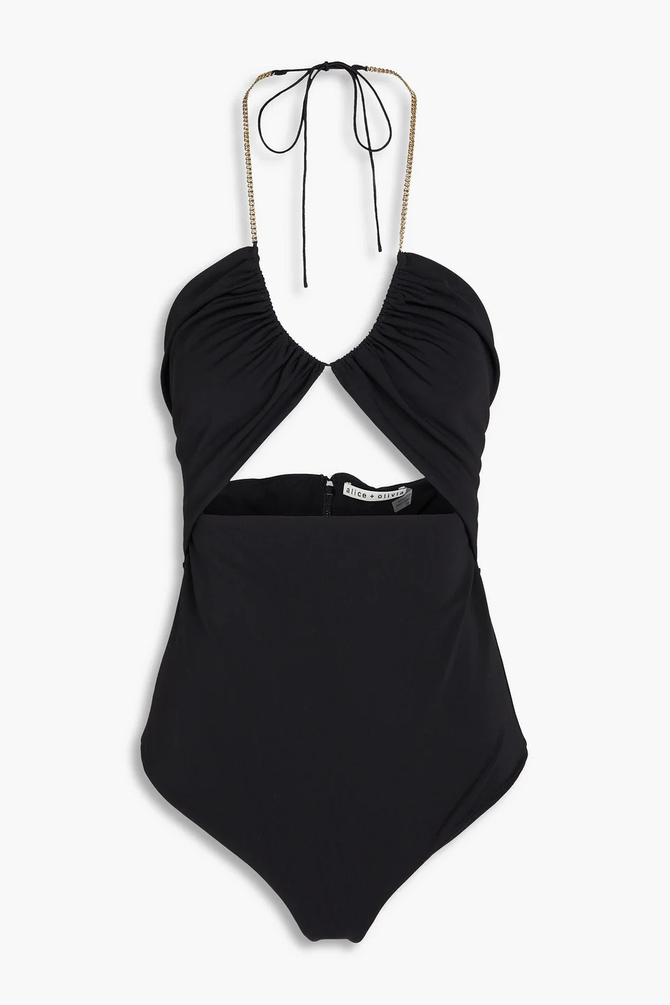 Bodysuit stretch-jersey chain-embellished cutout ties at neck hook and zip fastening at back mid-weight, stretchy fabric dry clean imported Get ready to turn heads with Alice + Olivia’s ‘Sariya’ cutout top. Made from soft stretch-jersey, it has a striking halterneck design with chain embellishments that elevate your look. Just add tailored pants and heels for a night out. 95% Polyester 5% Recycled elastane Product Code 1647597353115343