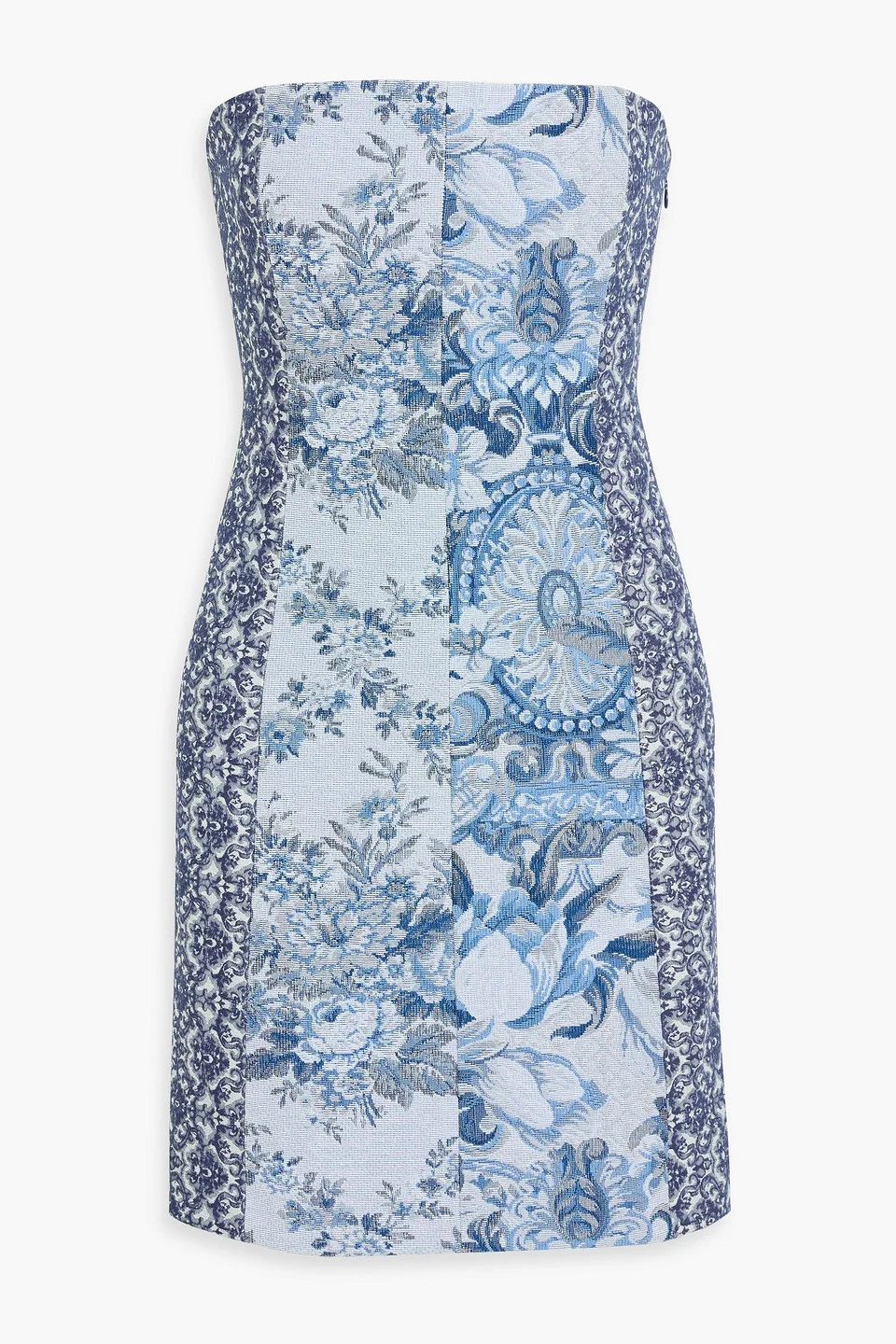 Strapless dress jacquard concealed hook and zip fastening at side fully lined mid-weight, non-stretchy fabric dry clean imported 64% Polyester 31% Cotton 5% Other Fibres Product Code 46376663163019672