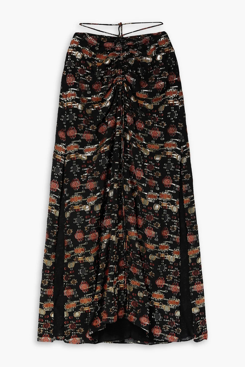 Safia ruched metallic fil coupé silk-blend crepe maxi skirt