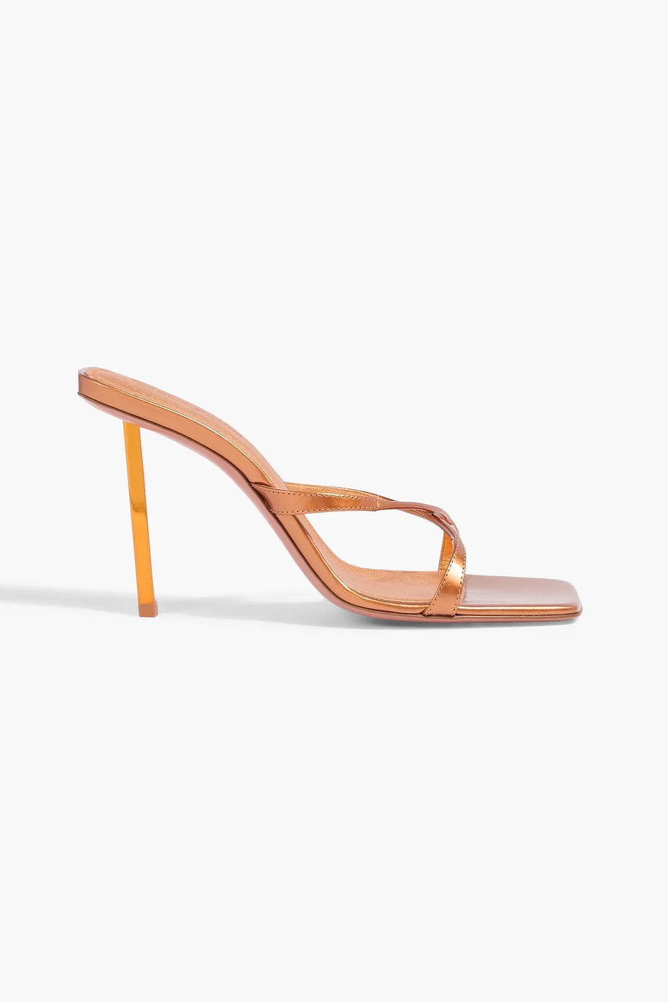 Mules mirrored-leather crossover straps open square toe metallized heel slip on leather/rubber sole made in italy 100% Calf-skin leather Product Code 46376663163116653