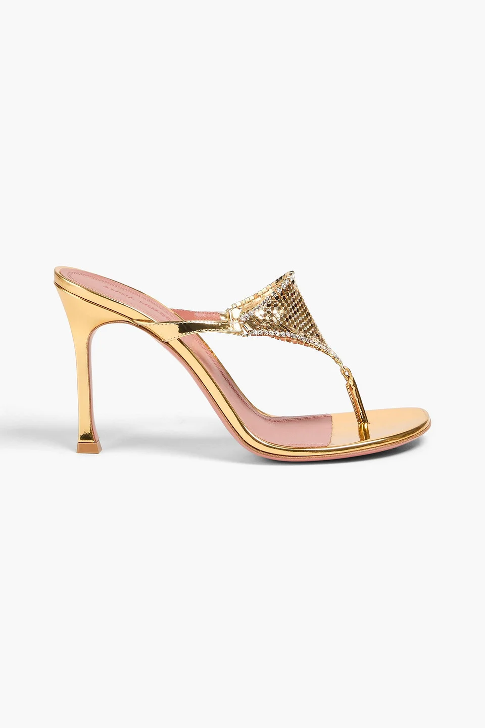Cameron Crystal-embellished Chainmail And Metallic Leather Mules