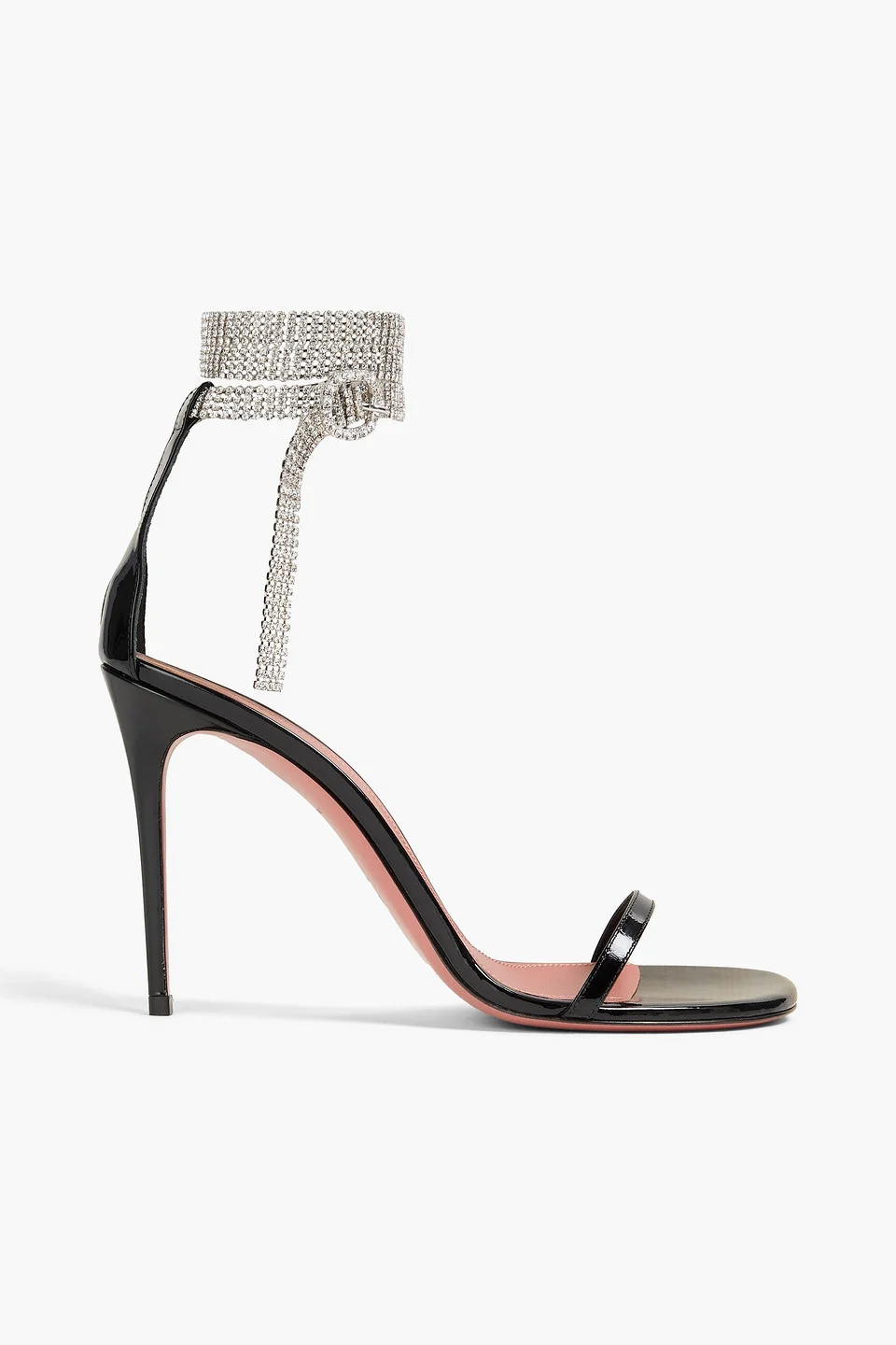 Sandals patent-leather crystals open round toe buckle-fastening ankle strap leather/rubber sole made in italy 100% Calf-skin leather Product Code 46376663163090051