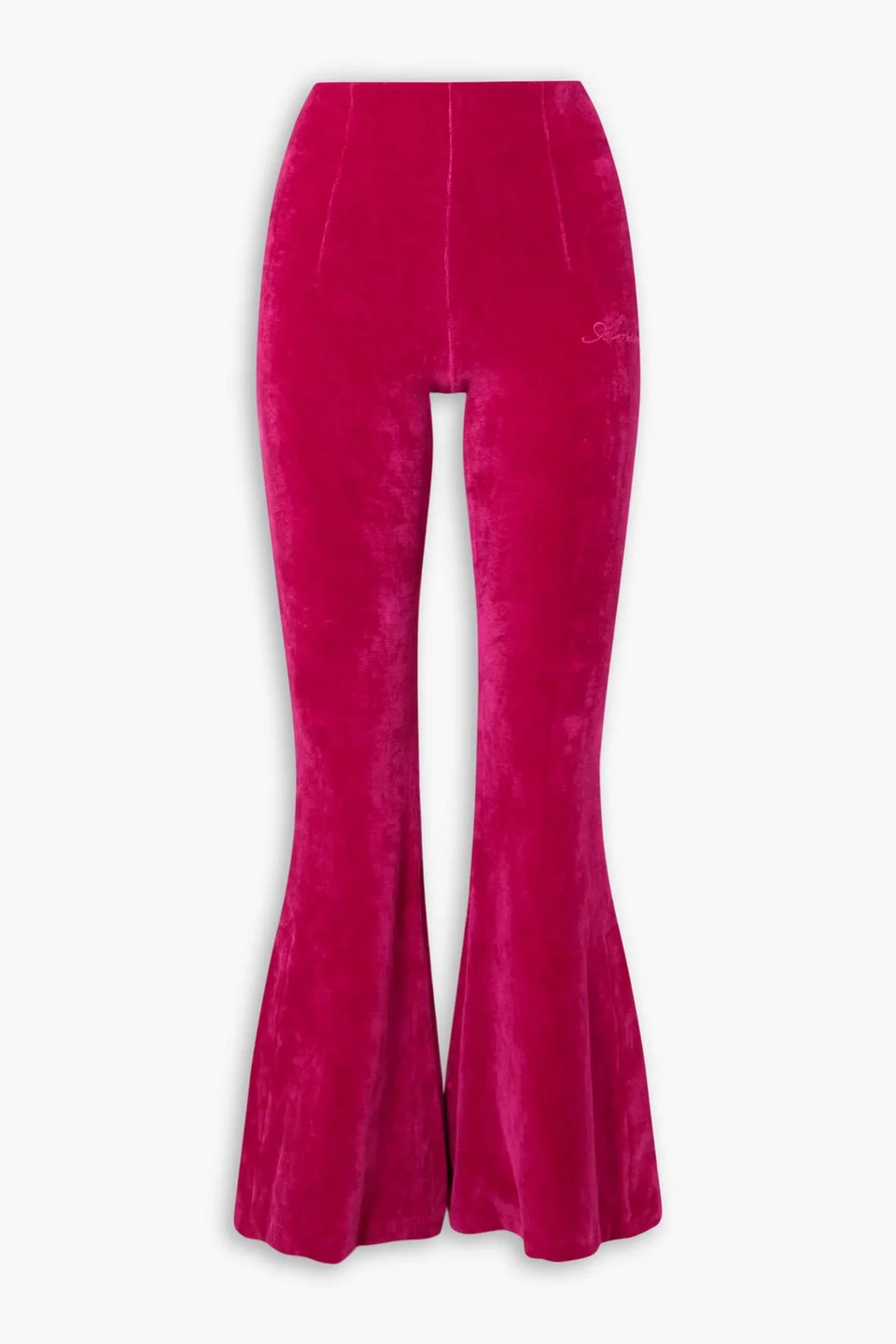 Leggings velour cotton-blend embroidered logo high-rise cut pull on mid-weight, stretchy fabric dry clean made in italy AMIRI’s leggings are a major throwback to ‘00s tracksuits. They’re made from cotton-blend velour (with stretch) that hugs your figure from the waist to the knee before flaring out. The label’s name is embroidered on the upper leg. 79% Cotton 17% Polyurethane 3% Nylon 1% Elastane Product Code 1647597295749814
