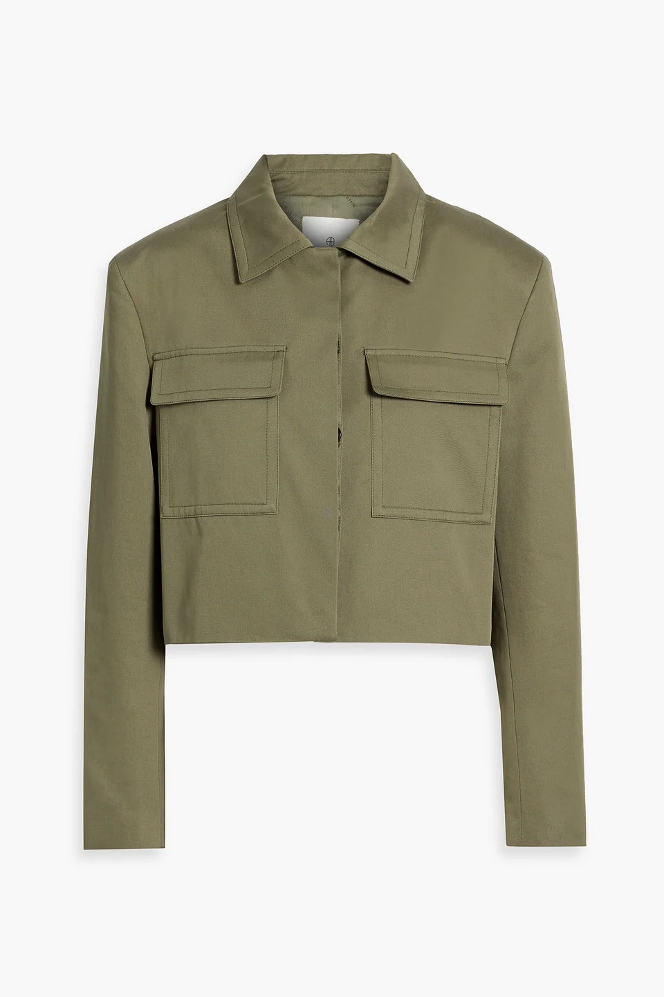 Jacket cotton-twill cropped shoulder pads buttoned cuffs breast pockets concealed button fastenings through front fully lined mid-weight, non-stretchy fabric dry clean imported 100% Cotton Product Code 46376663162946888