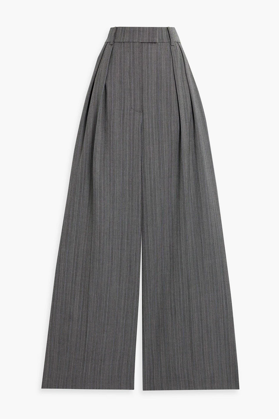 Wide-leg pants striped jacquard wool-blend pleated front slant pockets back welt pocket belt loops high-rise cut partially lined concealed hook, button and zip fastening at front mid-weight, non-stretchy fabric dry clean imported 99% Wool 1% Polyester Product Code 46376663162949074