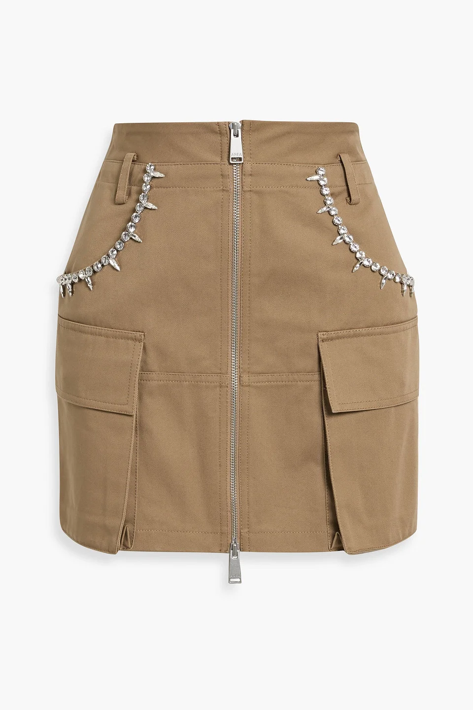 Crystal-embellished cotton-twill mini skirt