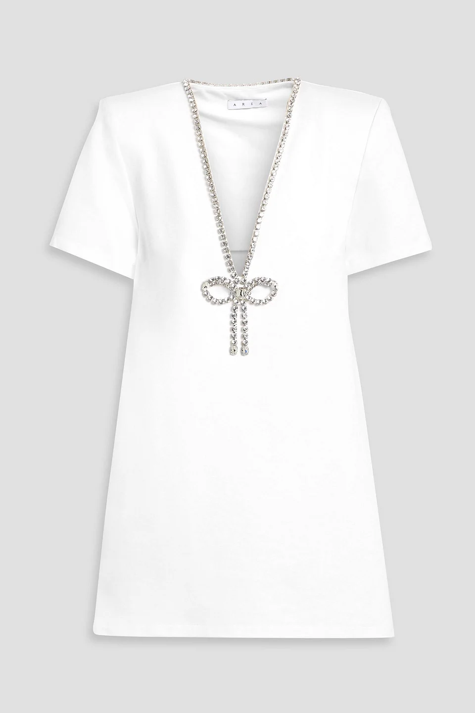 CRYSTAL BOW V-NECK T-SHIRT DRESS