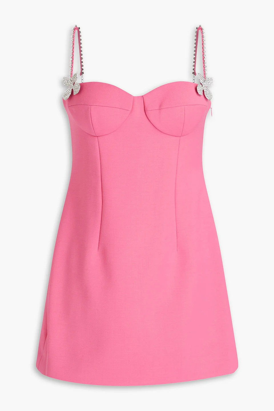 Dress crepe wool-blend crystals adjustable straps underwired padded cups concealed hook and zip fastening at side fully lined mid-weight, non-stretchy fabric dry clean imported 99% Virgin Wool 1% Lycra® Product Code 1647597345437573