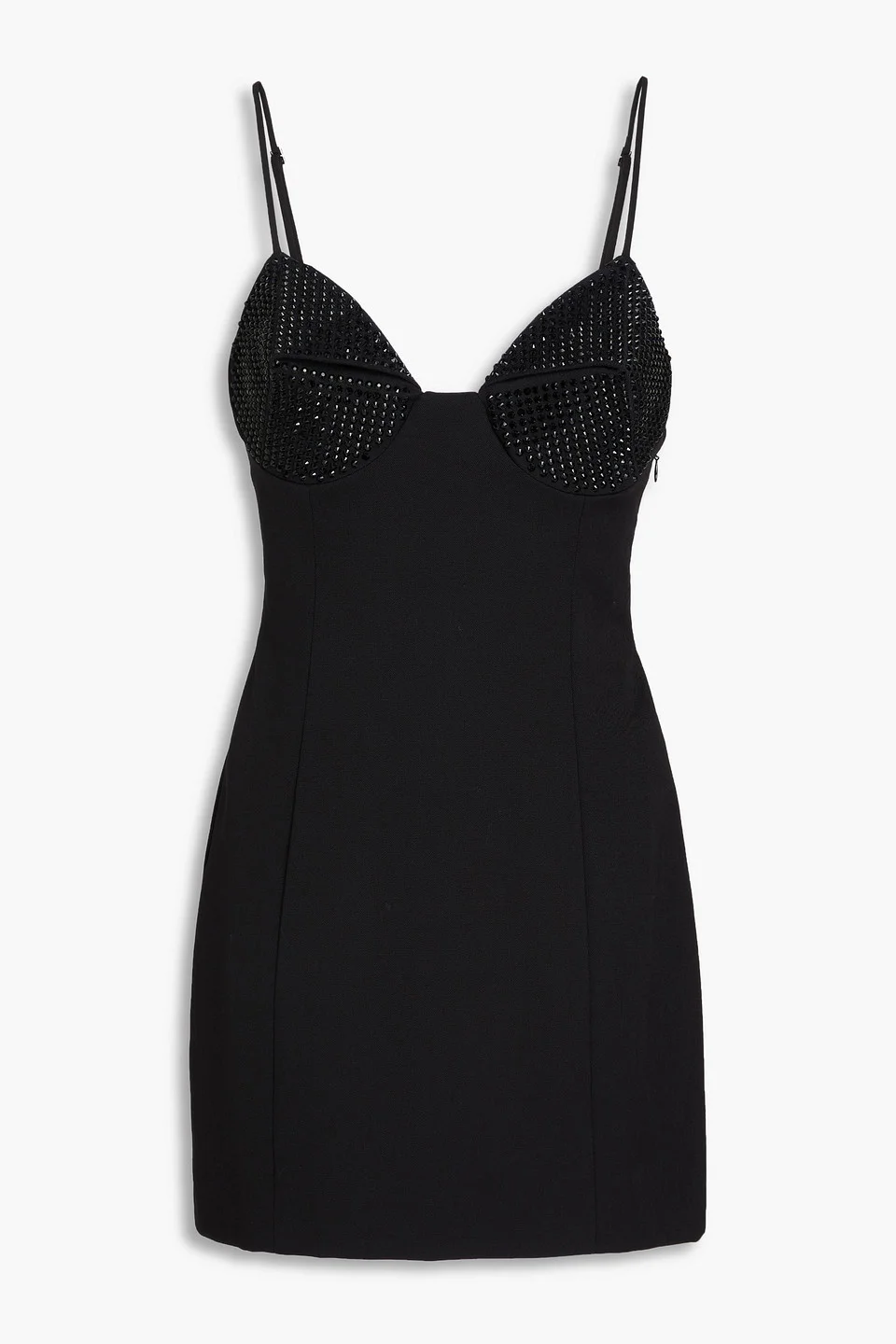 Crystal-embellished wool-blend crepe mini dress