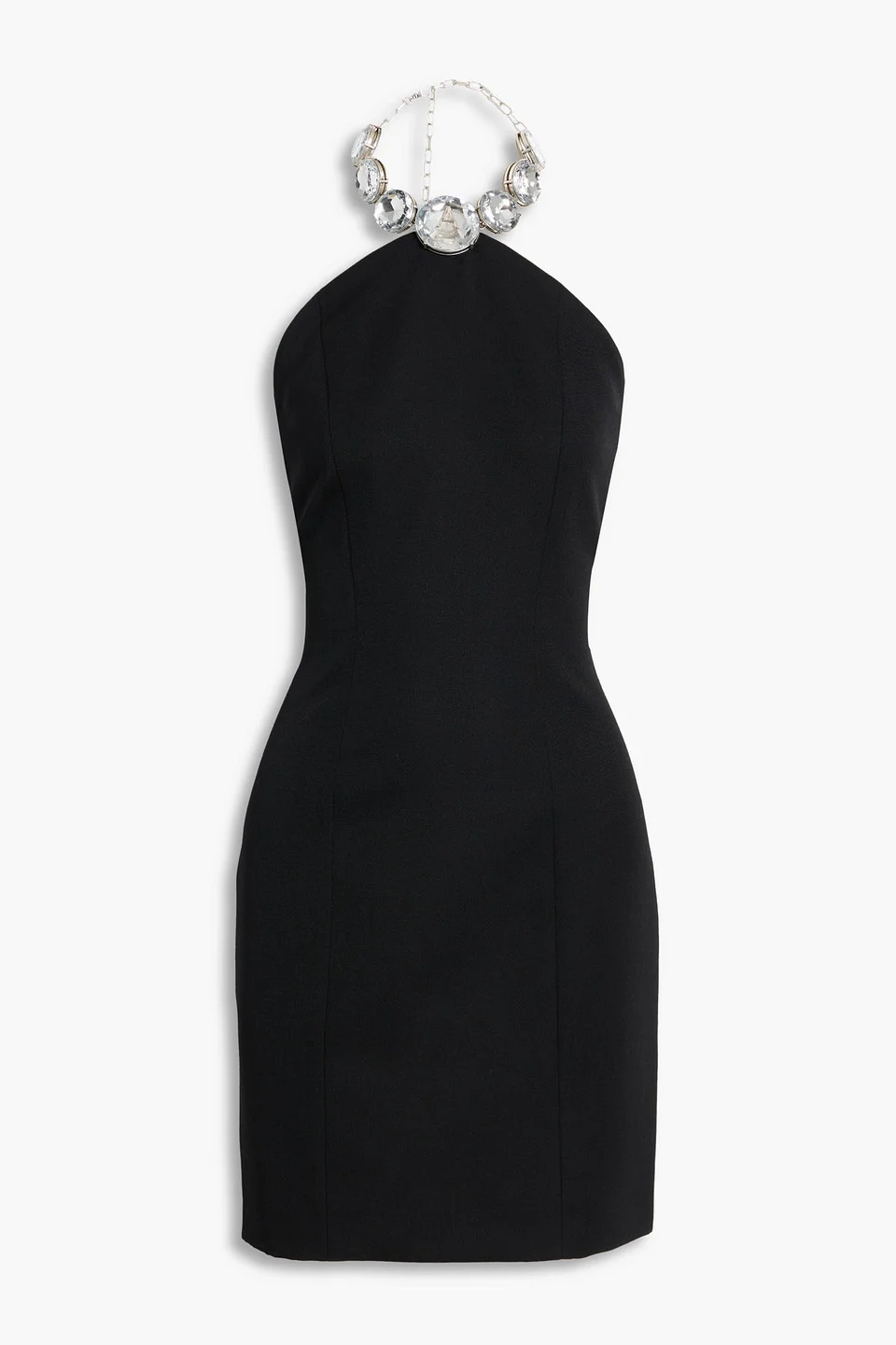 Dress wool-twill crystals clasp fastening at neck concealed zip fastening along back fully lined mid-weight, non-stretchy fabric dry clean made in italy 100% Virgin Wool Product Code 46376663162989812