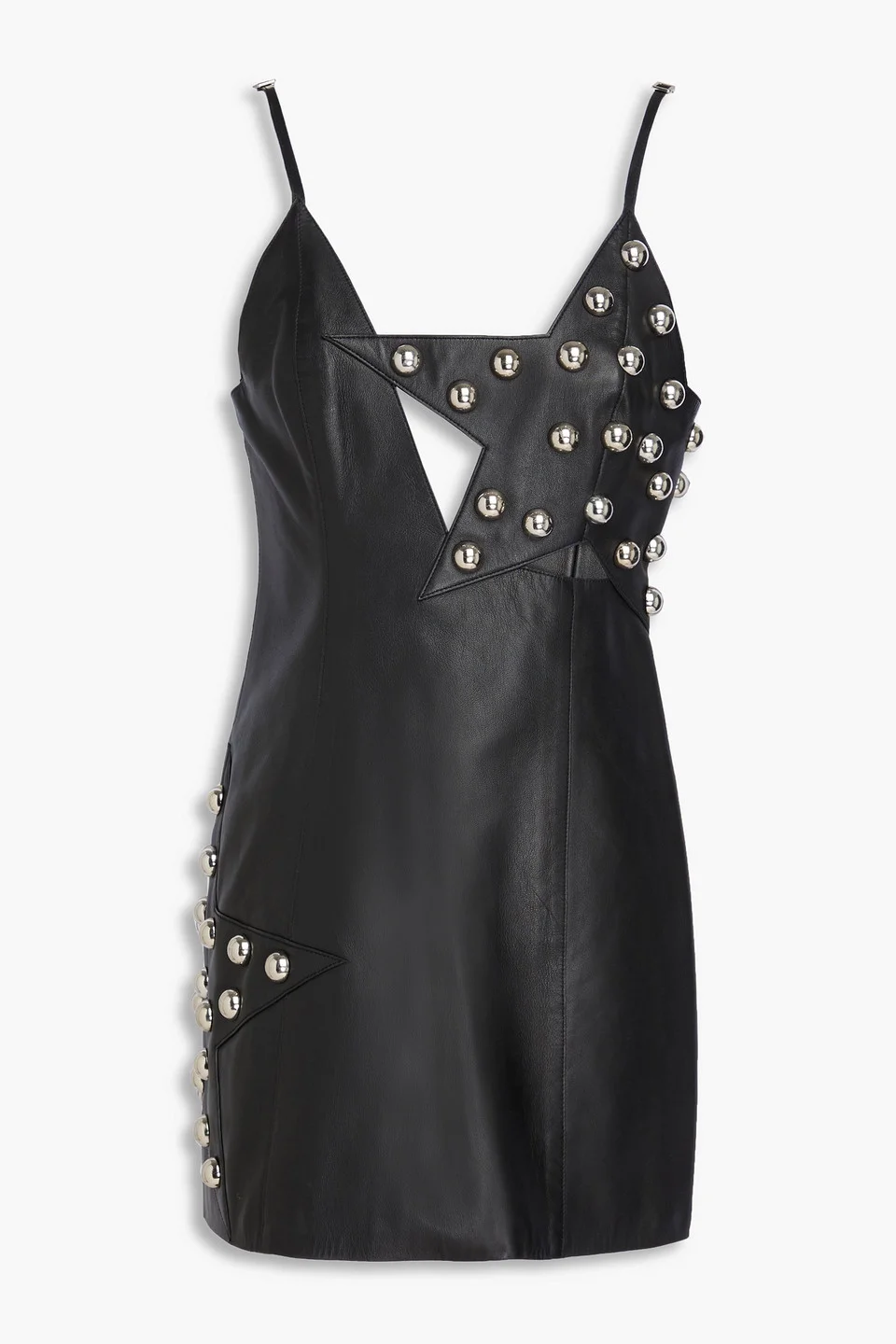 Cutout studded leather mini dress