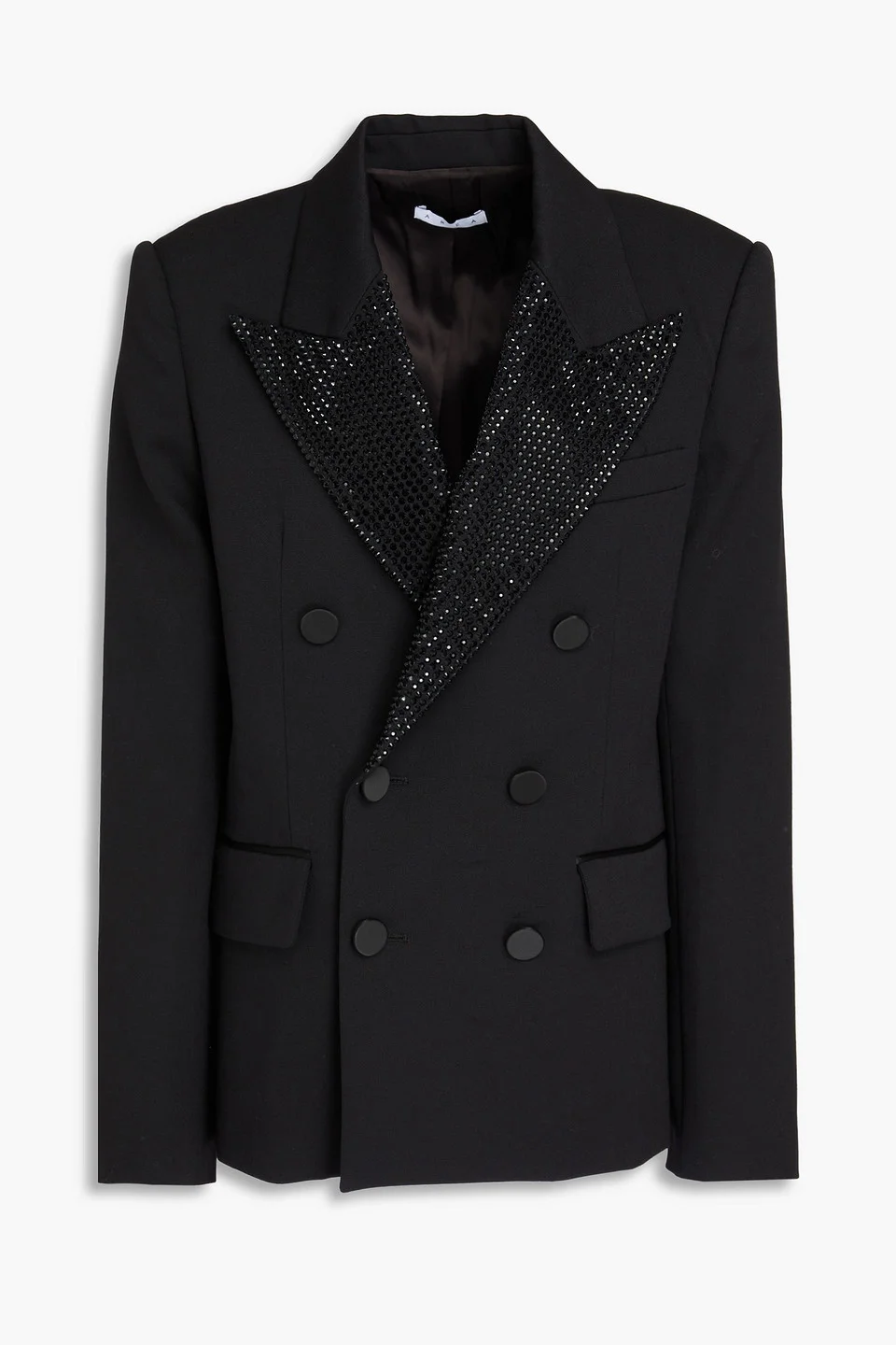 Blazer twill wool-blend crystals shoulder pads satin trims buttoned cuffs breast pocket two side flap pockets button fastenings through double-breasted front fully lined back vent mid-weight, non-stretchy fabric dry clean made in italy 98% Wool 2% Elastane Product Code 1647597355993751
