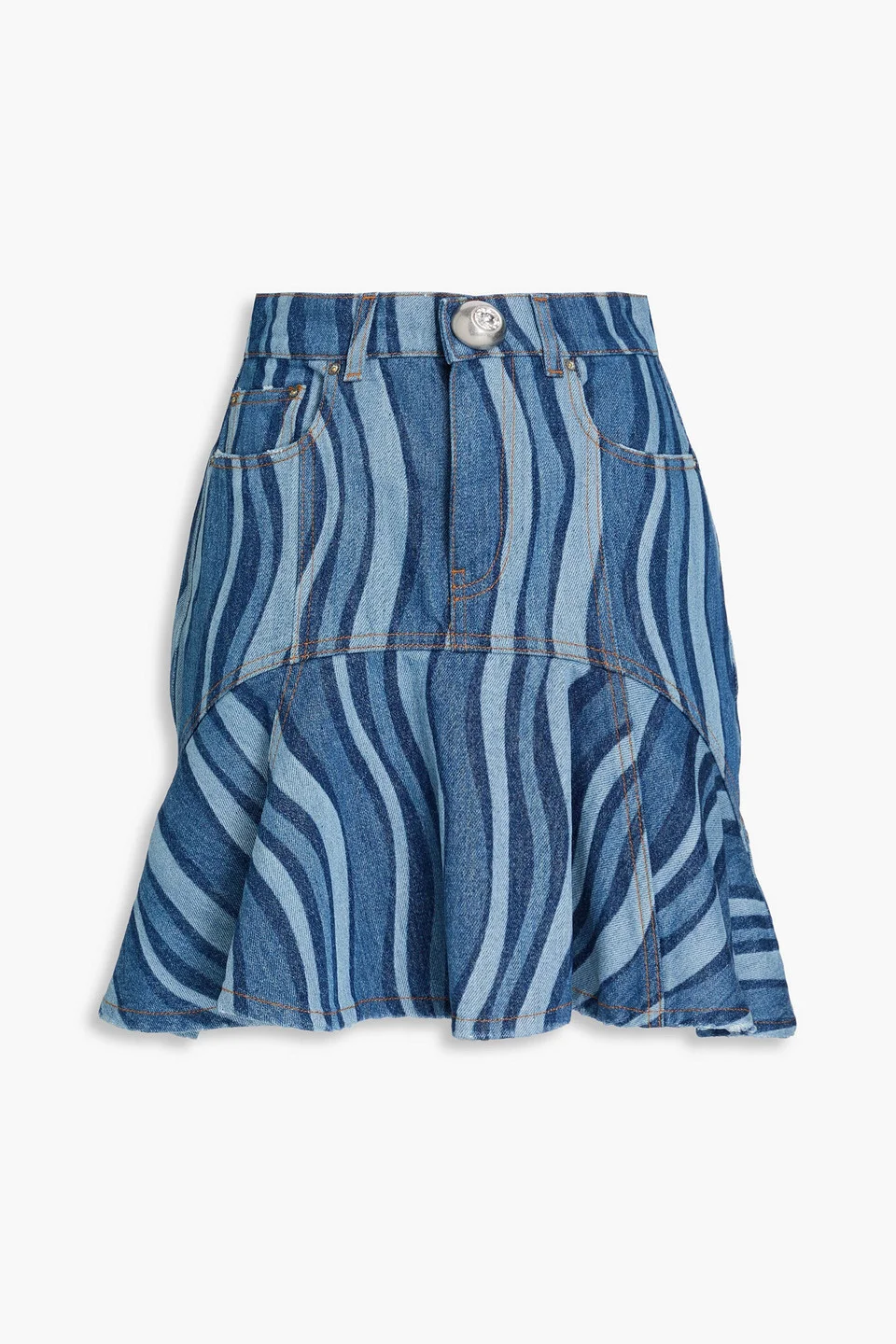 Fluted printed denim mini skirt