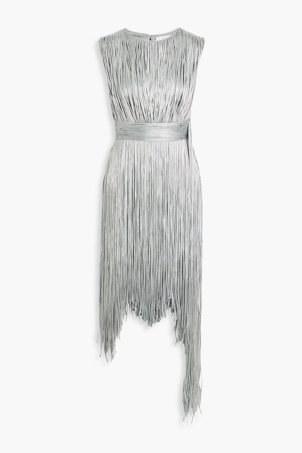Dress metallic cotton-blend jersey fringed asymmetric hem hook-fastening keyhole at back concealed hook and zip fastening at side mid-weight, slightly stretchy fabric hand wash or dry clean imported 93% Cotton 7% Elastane Product Code 46376663162990453