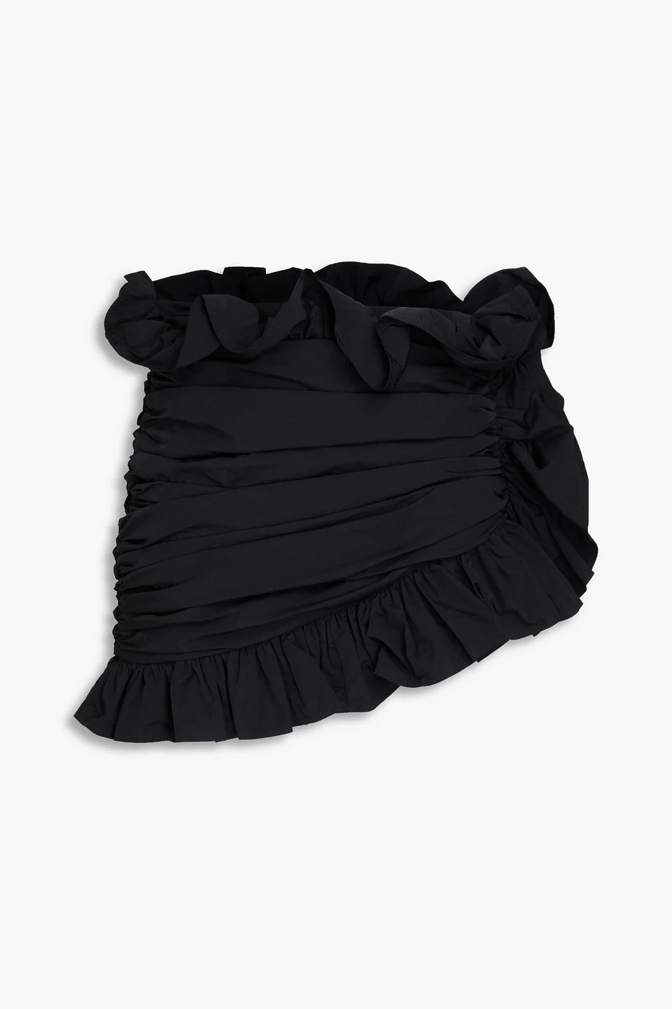 Skirt taffeta gathered ruffled ruched asymmetric hem concealed hook and zip fastening at side mid-weight, non-stretchy fabric dry clean imported 100% Nylon Product Code 1647597355958731