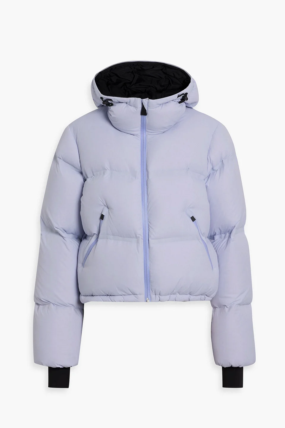 Ski jacket quilted shell cropped extendable thumbhole cuffs, snow skirt drawstring hood and hem, zipped pockets (yes! one for your ski pass) concealed zip fastening through front down and feather filling mid-weight, water-repellant fabric dry clean imported We know you show up to outperform on-piste but when it comes to ski style is there really any competition? This piece is made for record-breaking runs. Shop more Aztech Mountain winners here. 100% Nylon Product Code 46376663162999602