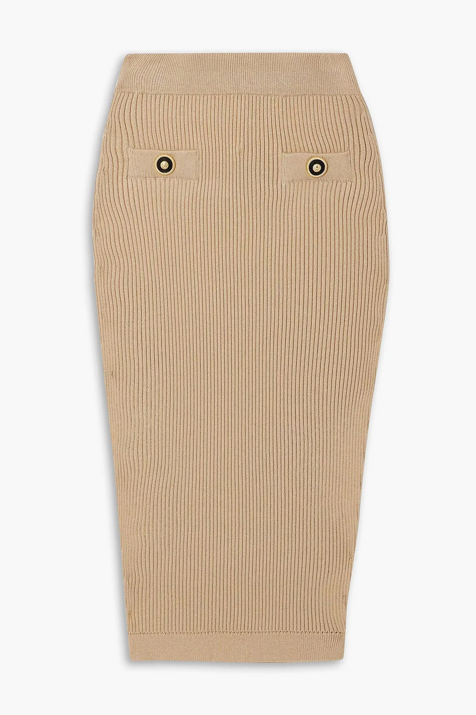 Pencil skirt ribbed-knit button-embellished elasticated waist faux pockets slips on mid-weight knit dry clean made in italy 84% Viscose 16% Polyester Product Code 1647597349885635