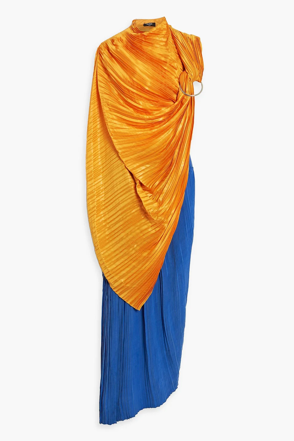 Dress silk-satin cupro pleated ring embellishment draped detachable panel side split fully lined concealed hook fastenings at neck concealed hook and zip fastening at side non-stretchy fabric mid-weight fabric dry clean imported 100% Cupro Product Code 1647597319354249