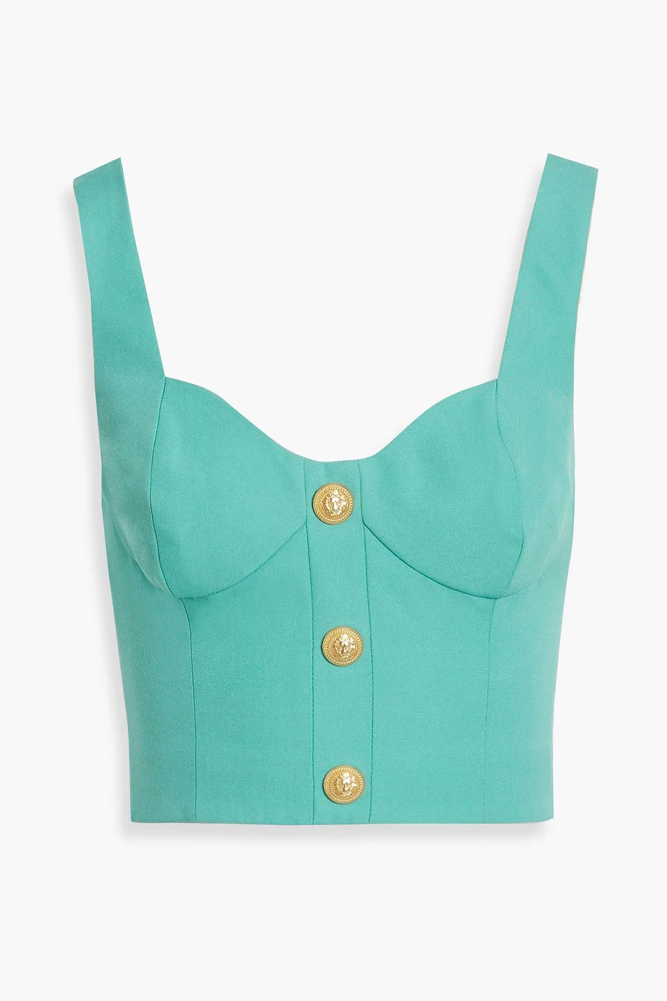 Bustier top grain de poudre wool button-embellished cropped zip fastening through back fully lined mid-weight, non-stretchy fabric dry clean imported 100% Wool Product Code 46376663162921212
