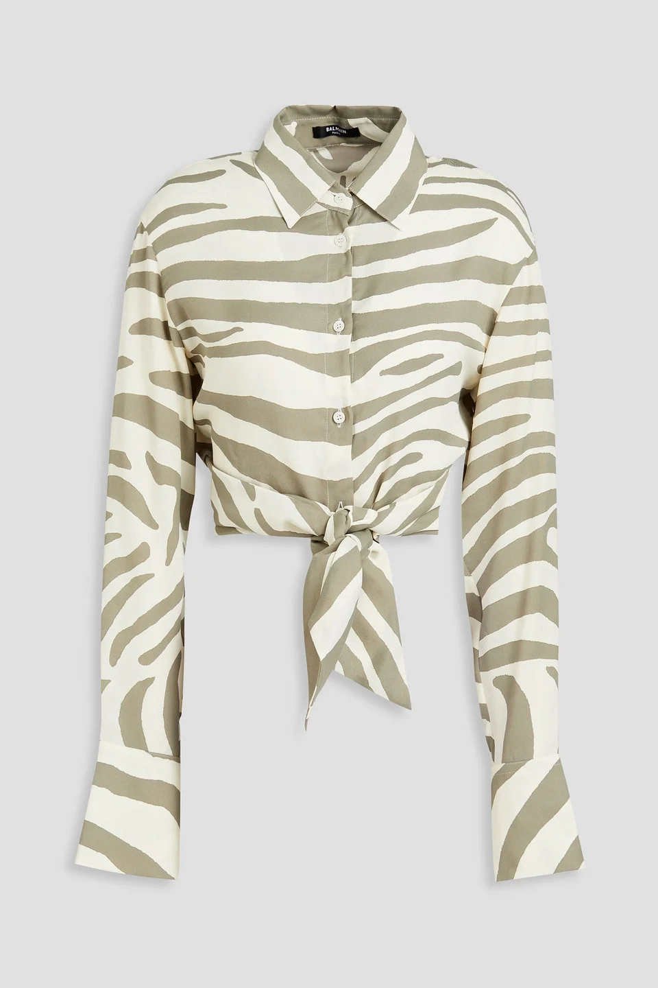 Shirt zebra-print twill cropped waist ties buttoned cuffs button fastenings through front non-stretchy fabric mid-weight fabric machine wash made in italy 71% Viscose 29% Tencel® Product Code 1647597334788388