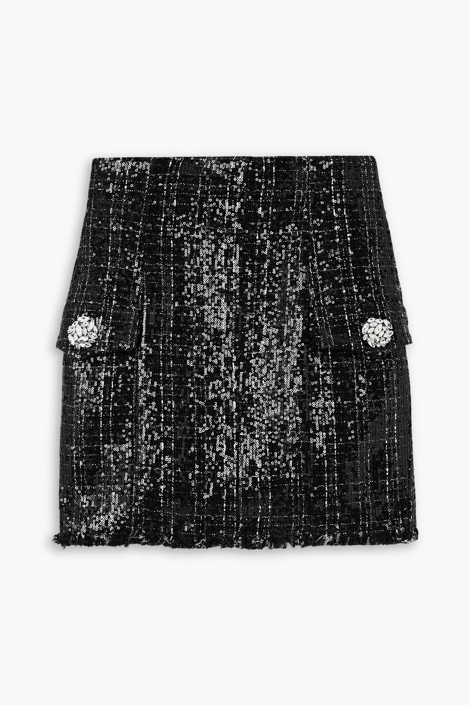 Skirt tweed crystals sequins metallic trim faux pockets frayed hem fully lined zip fastening along back mid-weight, non-stretchy fabric dry clean imported 100% Polyester Product Code 1647597323486582