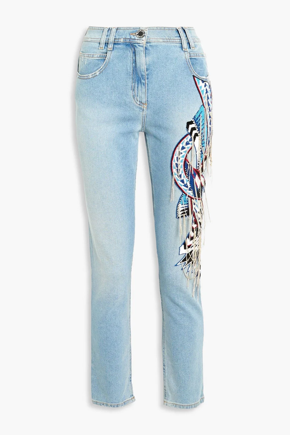 Slim-leg jeans denim distressed chain-embellished beads belt loops high-rise cut multipockets button and concealed zip fastening at front slightly stretchy fabric mid-weight fabric dry clean made in italy 98% Cotton 2% Elastane Product Code 1647597291063300