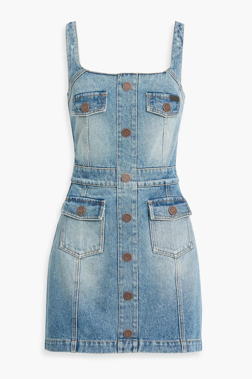 Dress faded denim button-embellished front flap pockets zip fastening along back mid-weight, non-stretchy fabric machine wash made in italy 100% Cotton Product Code 46376663163073957