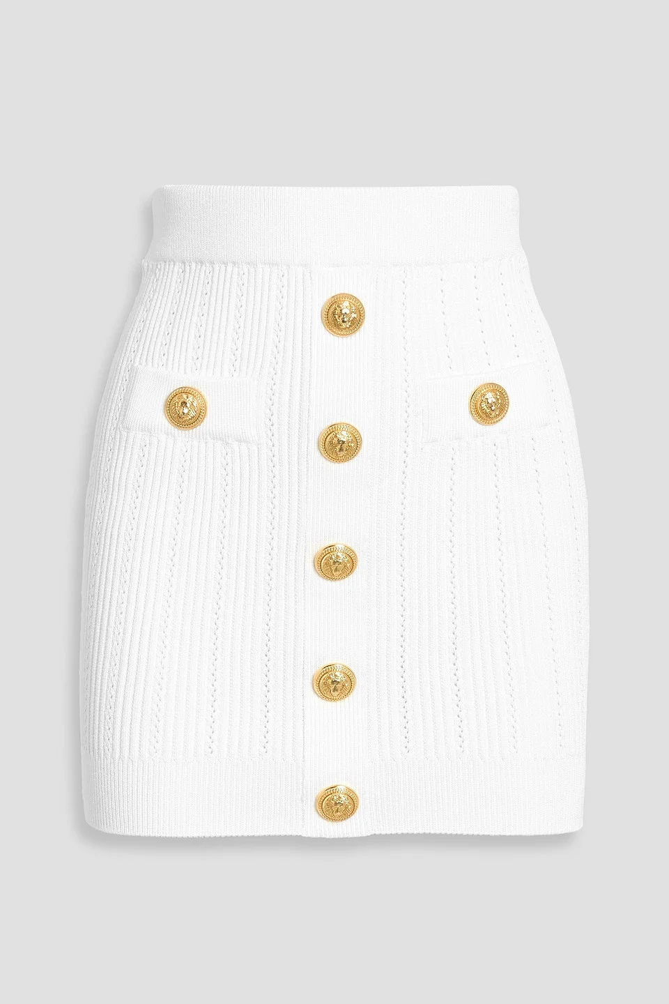 Skirt pointelle-knit ribbed-knit paneled button-embellished elasticated waist faux pockets slips on mid-weight knit dry clean made in italy 83% Viscose 17% Polyester Product Code 46376663163073968