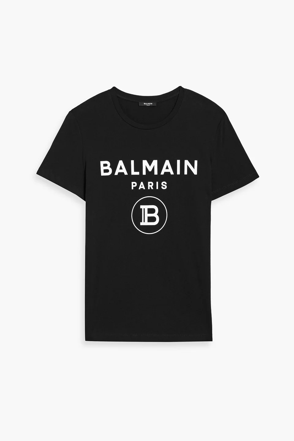 Black cotton T-shirt with white Balmain Paris logo print