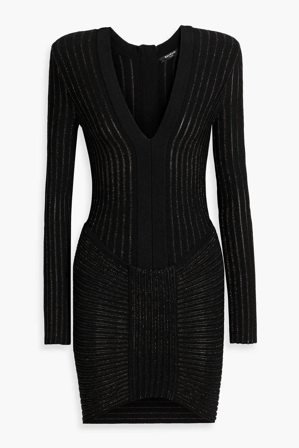 Dress metallic ribbed-knit exaggerated shoulder pads zip fastening along back mid-weight knit dry clean made in italy 83% Viscose 17% Polyester Product Code 46376663162920265