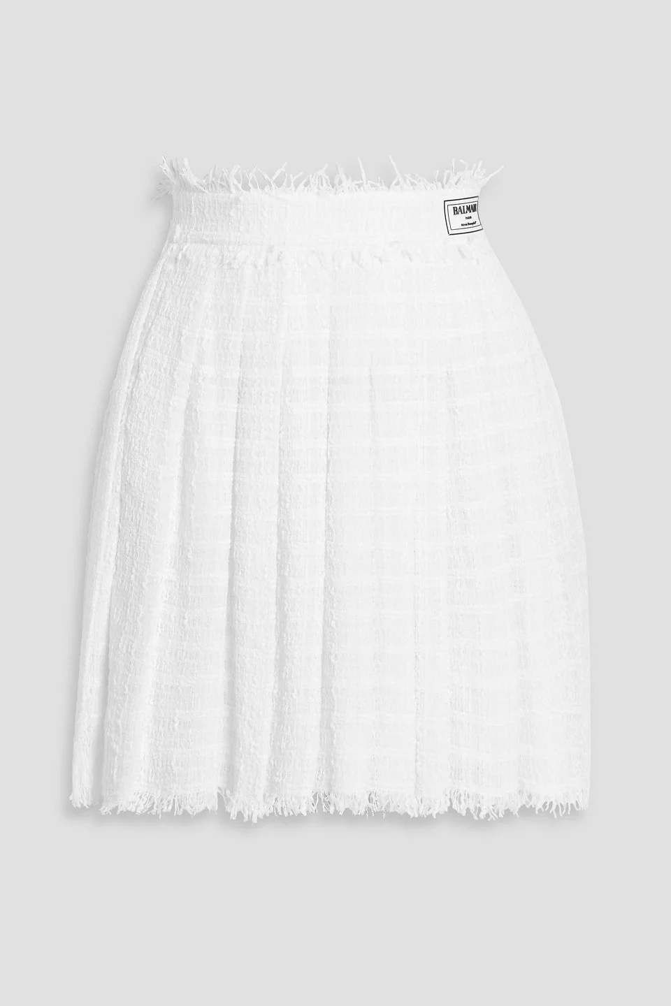 Skirt tweed pleated frayed trims side slit pockets fully lined concealed hook and zip fastening at side mid-weight, non-stretchy fabric dry clean imported Looking for a really great mini skirt? Balmain's tweed mini skirt has sporty pleats that fan out with every step. Just add a tucked-in top and mules for a chic day out. 70% Polyamide 23% Cotton 4% Acrylic 3% Viscose Product Code 46376663162920546