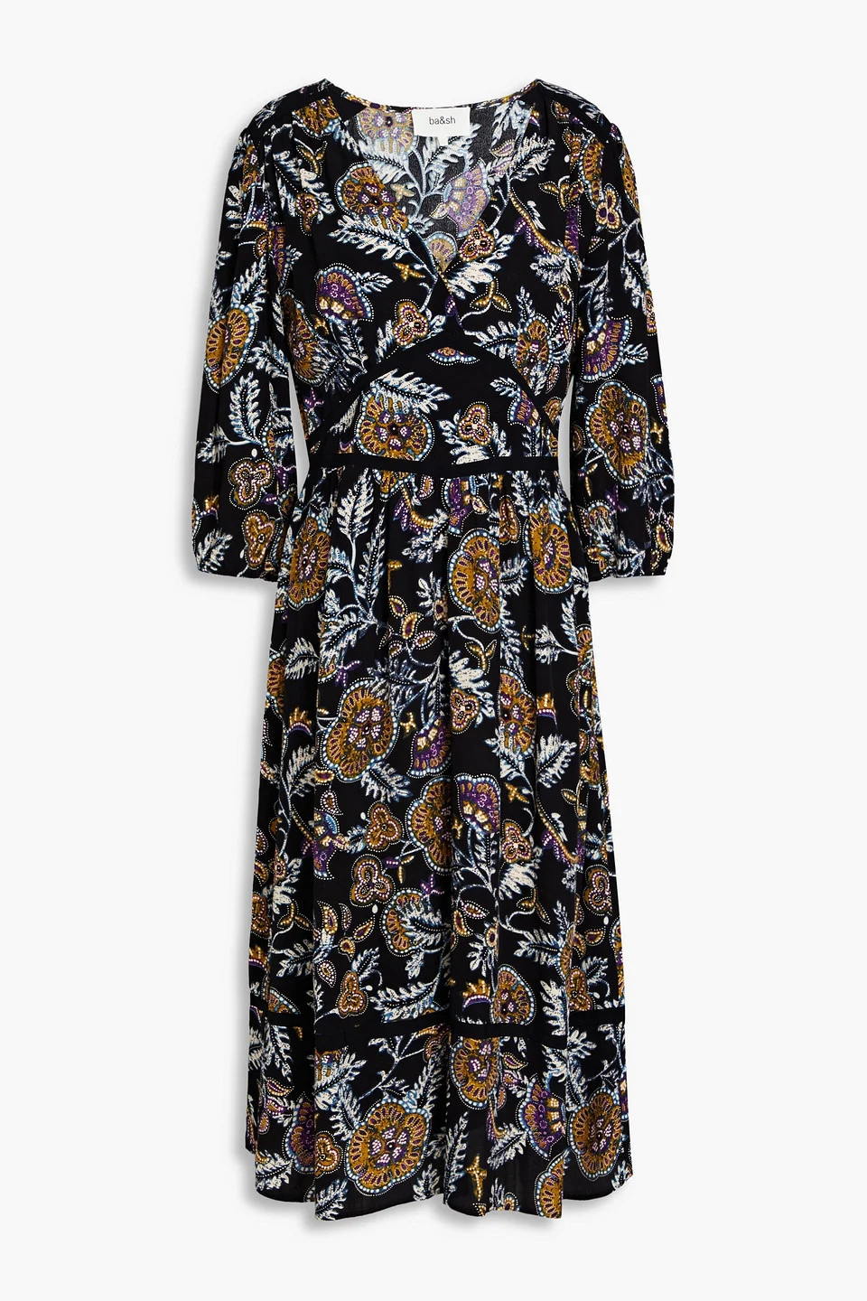 Dress printed crepe gathered partially elasticated waist elasticated cuffs concealed zip fastening along side non-stretchy fabric mid-weight fabric hand wash or dry clean imported 100% Viscose Product Code 1647597328795175