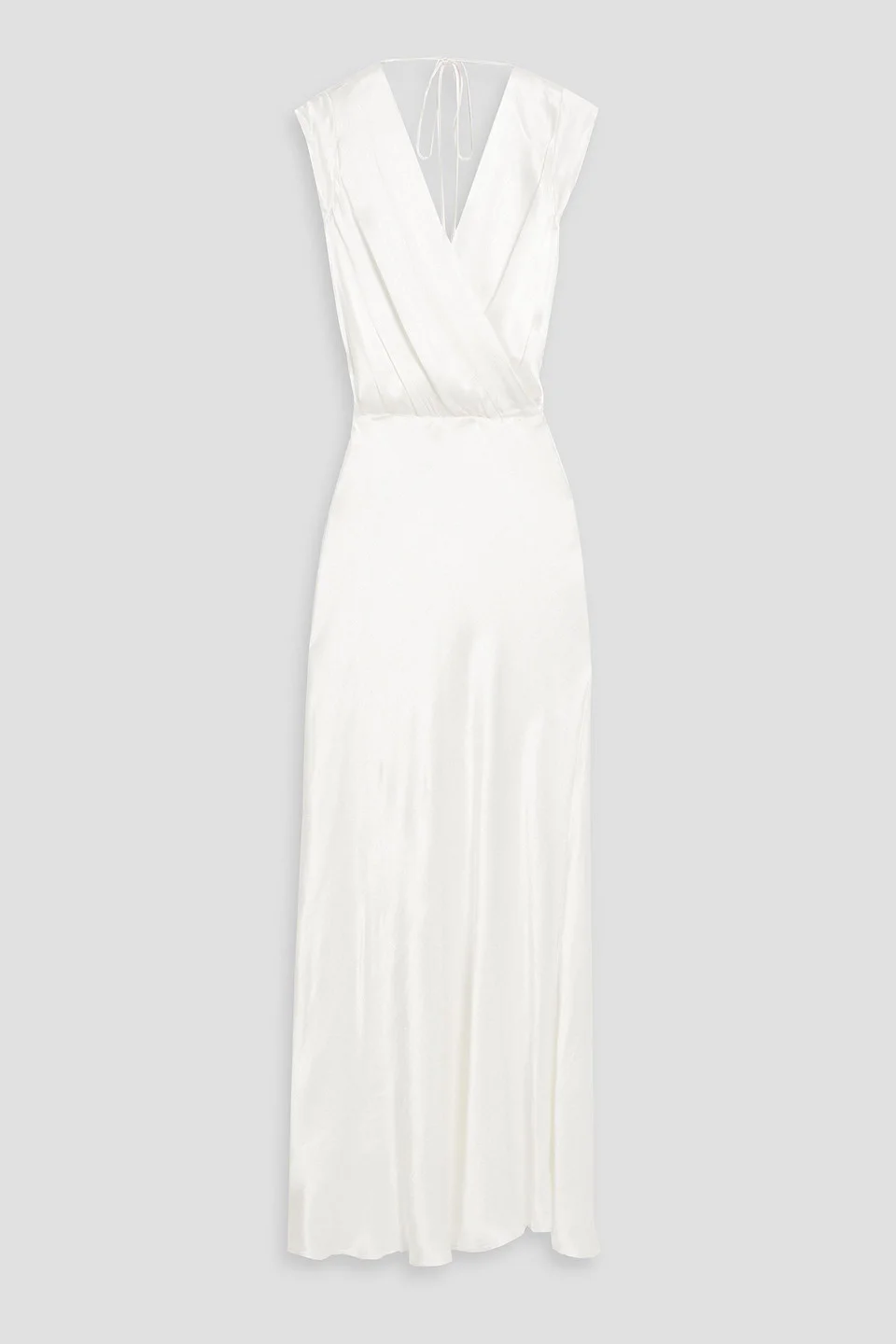 Dress satin-crepe draped ties at back concealed zip fastening along side mid-weight, non-stretchy fabric dry clean imported 100% Viscose Product Code 46376663162832497
