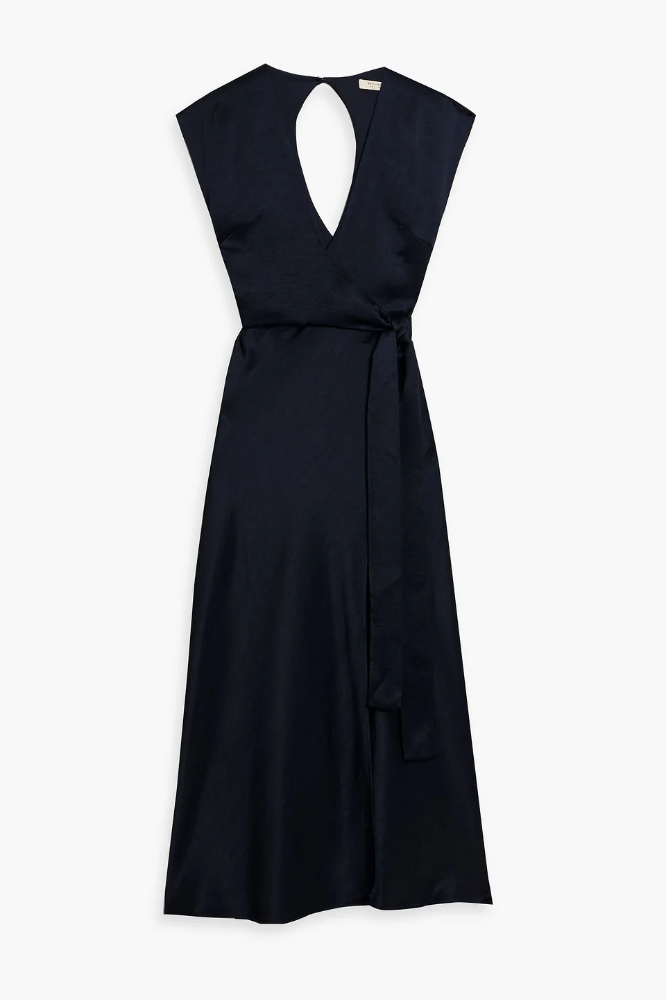 Dress satin-crepe wrap-effect waist ties front slit button-fastening keyhole at back concealed zip fastening along side partially lined mid-weight, non-stretchy fabric dry clean imported 100% Polyester Product Code 46376663162832494