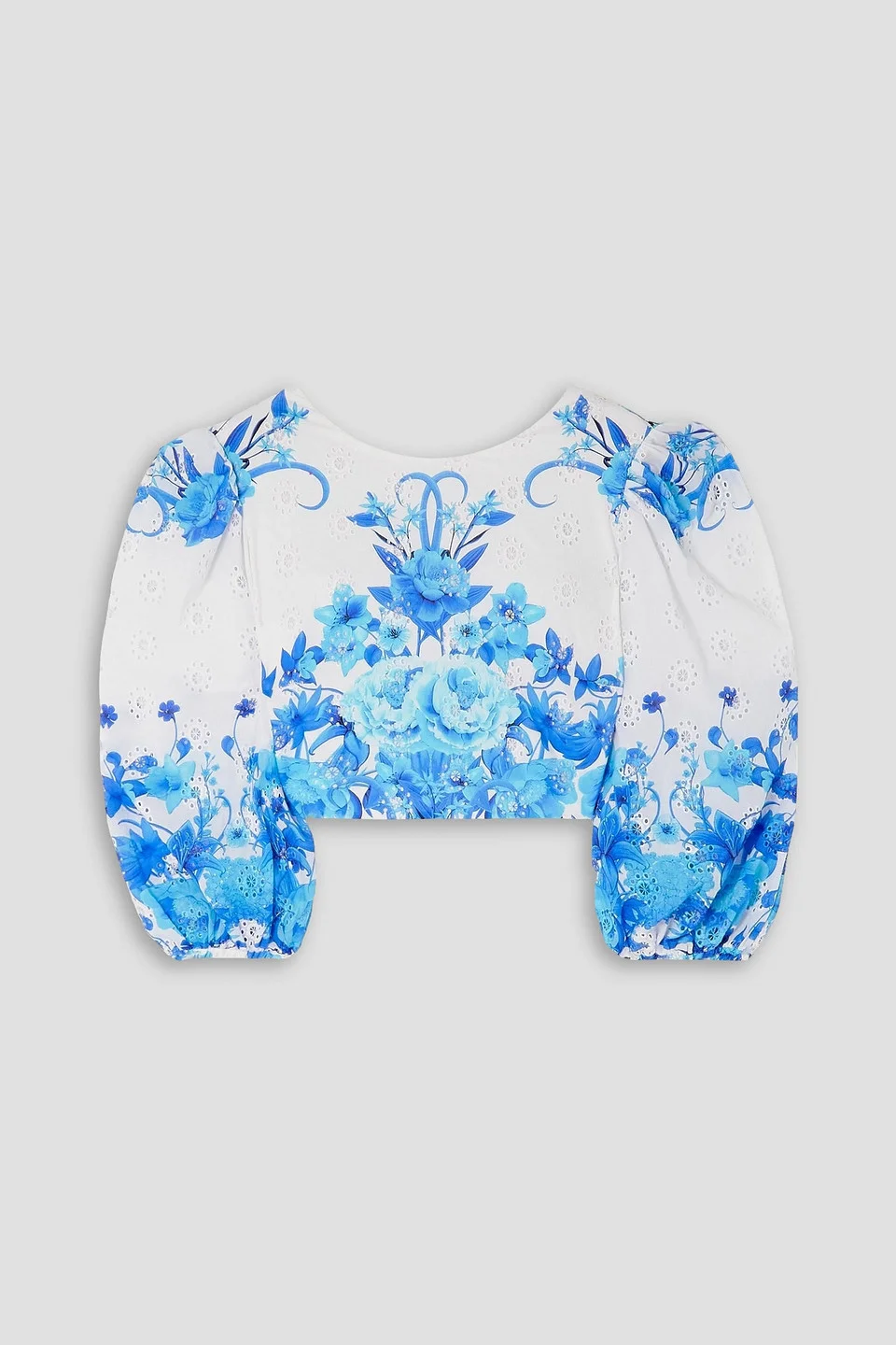 Top floral-print broderie anglaise cotton cropped elasticated cuffs button fastenings through back mid-weight, non-stretchy fabric dry clean imported I am my own muse, I am the subject I know best is the Frida Kahlo quote driving Borgo de Nor's feel-good, free-spirited style. Cropped and traced with elegant puffed sleeves, this 'Rhea' top is made from broderie anglaise cotton that's printed with an 'Antheia' motif in a myriad of blues. 100% Cotton Product Code 1647597347448541