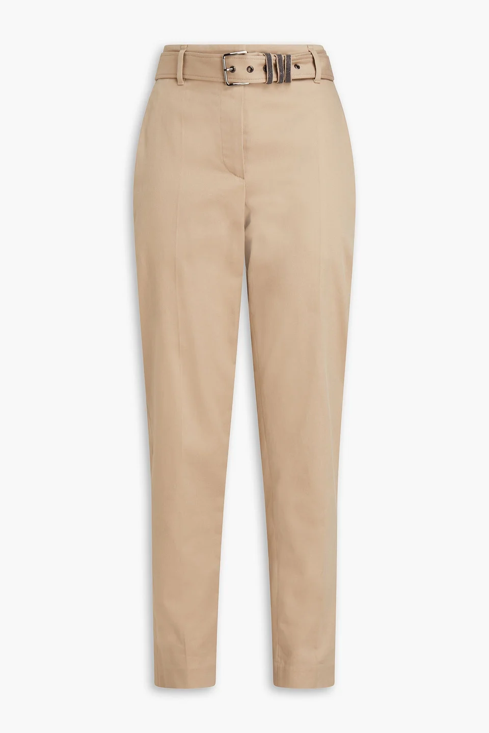 Bead-embellished belted cotton-blend twill tapered pants