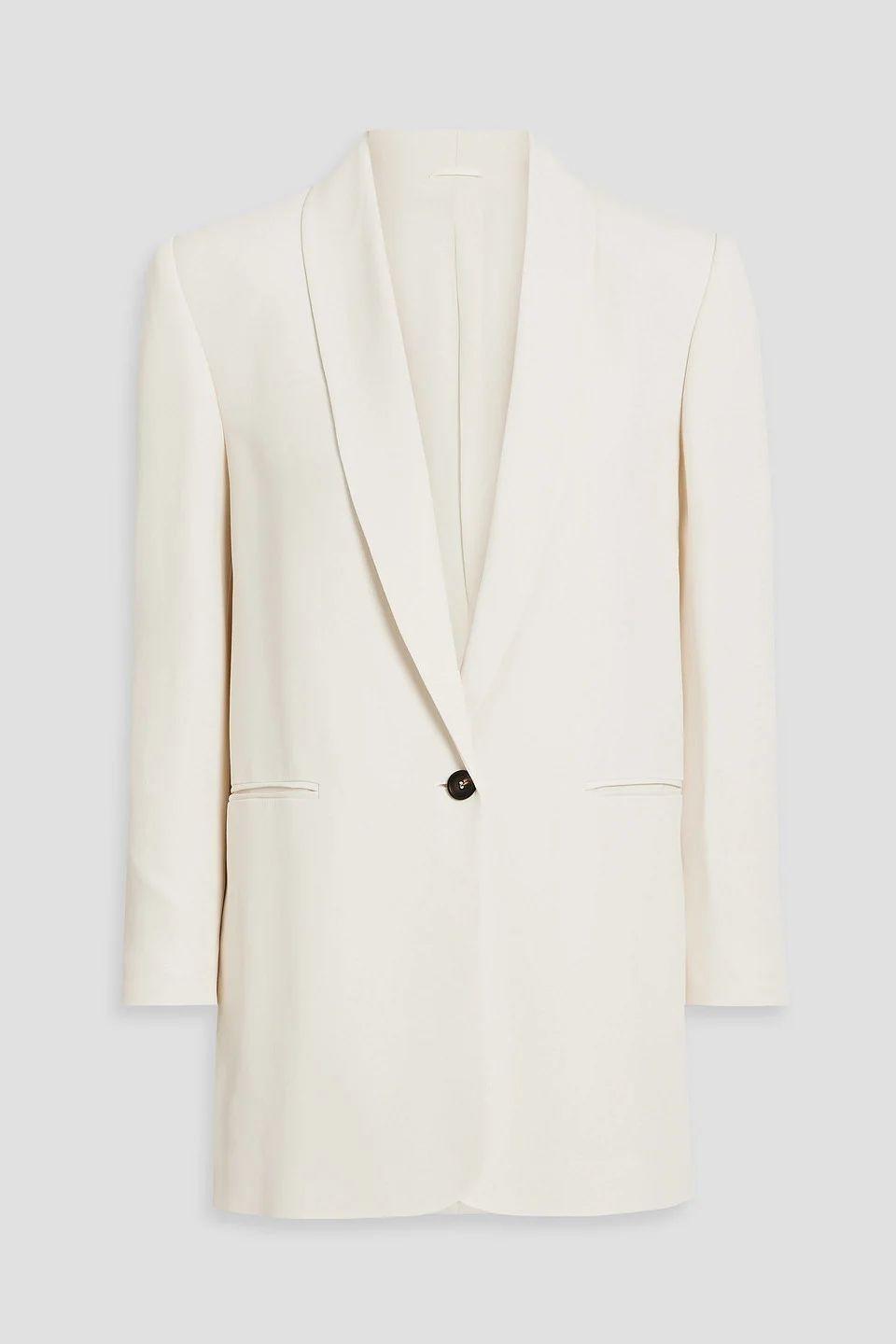 Blazer crepe bead embellishment shoulder pads non-functioning buttoned cuffs button fastening at front fully lined mid-weight, non-stretchy fabric dry clean made in italy Elevate your look with Brunello Cucinelli’s crepe blazer. It features a classic single-breasted design and the label's signature bead embellishments for a chic look. Wear it with tailored trousers or a sleek skirt for a polished finish. 52% Acetate 48% Silk Product Code 1647597339265397