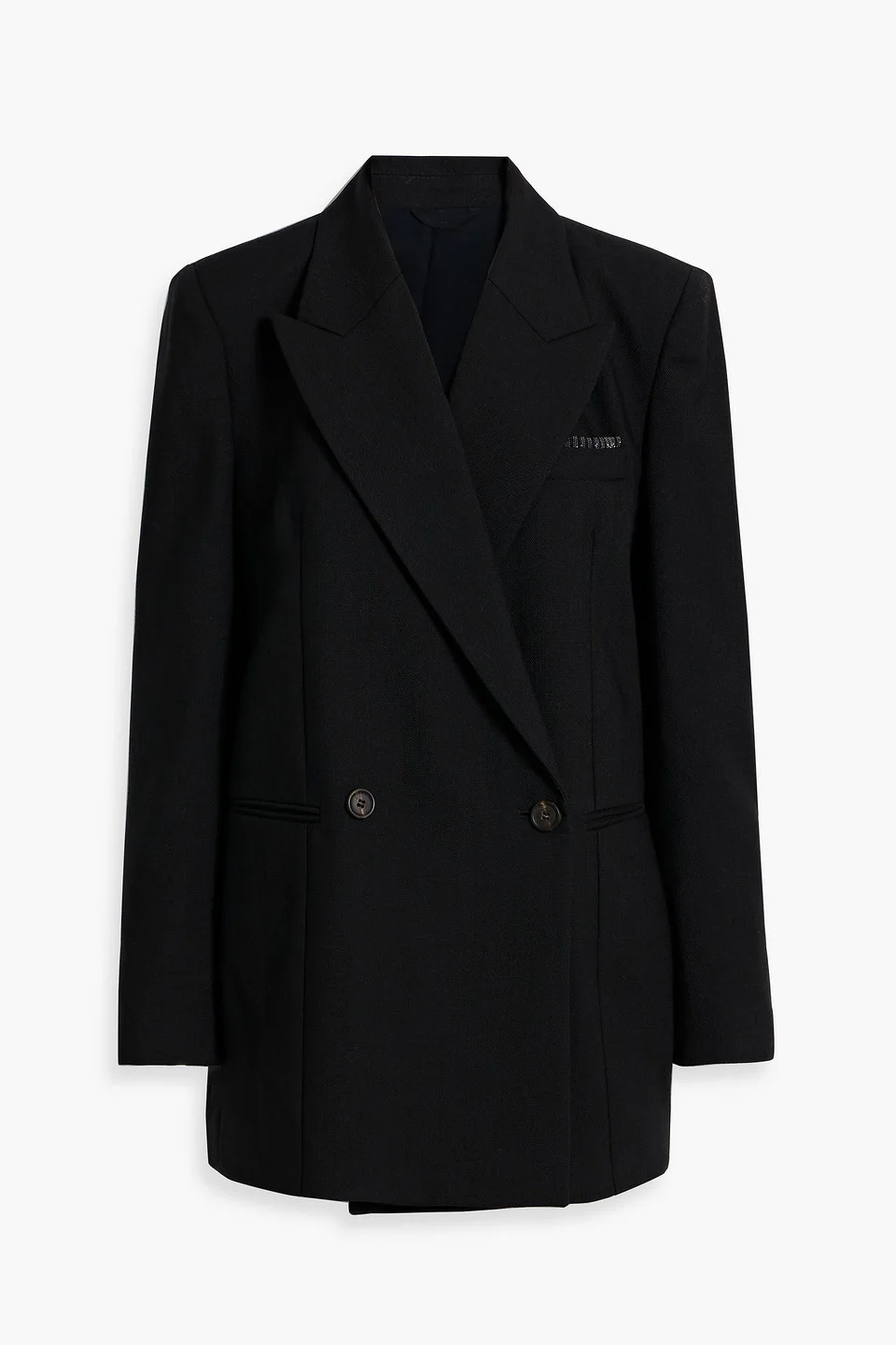 Bead-embellished double-breasted wool-twill blazer