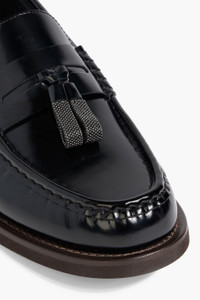 Minimal calfskin penny loafers with shiny tassels
