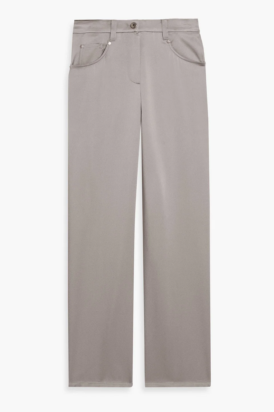 Wide-leg pants satin-crepe bead embellishment five pockets belt loops high-rise cut button and concealed zip fastening at front mid-weight, non-stretchy fabric dry clean made in italy 61% Acetate 39% Viscose Product Code 46376663163049334
