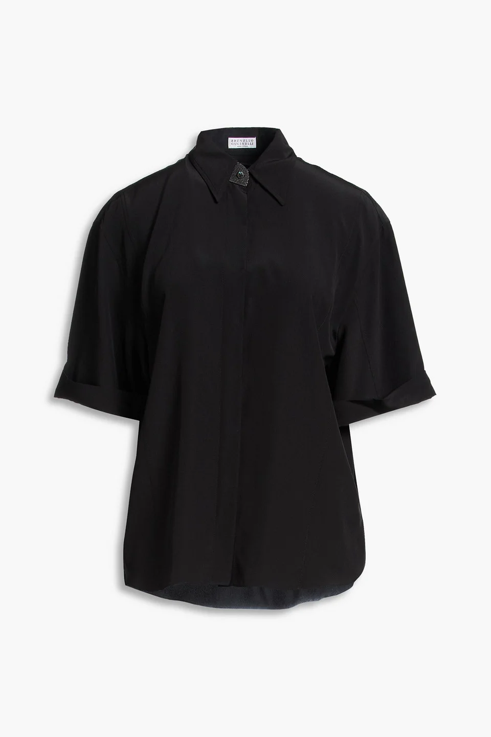 Bead-embellished silk crepe de chine shirt
